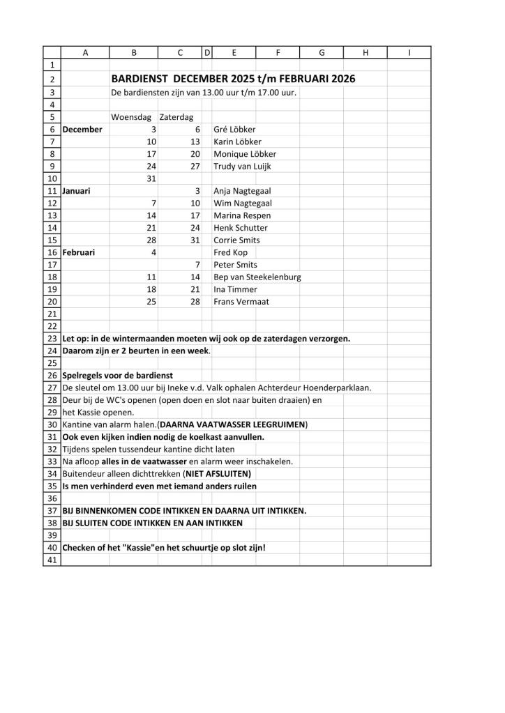 Bardiensten 2025/2026 Dit delen: Delen op X (Opent in een nieuw venster) X Share op Facebook (Opent in een nieuw venster) Facebook Vind-ik-leuk Aan het laden...