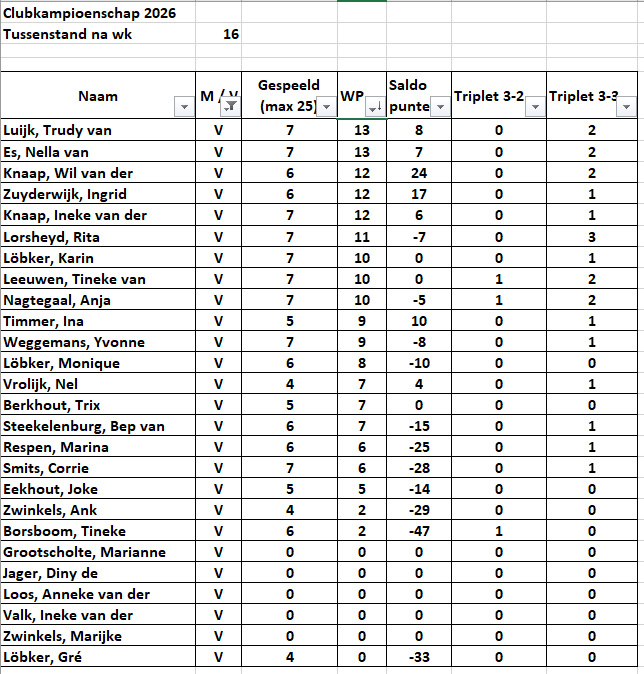 Clubcompetitie Dames 2026 Dit delen: Delen op X (Opent in een nieuw venster) X Share op Facebook (Opent in een nieuw venster) Facebook Vind-ik-leuk Aan het laden...