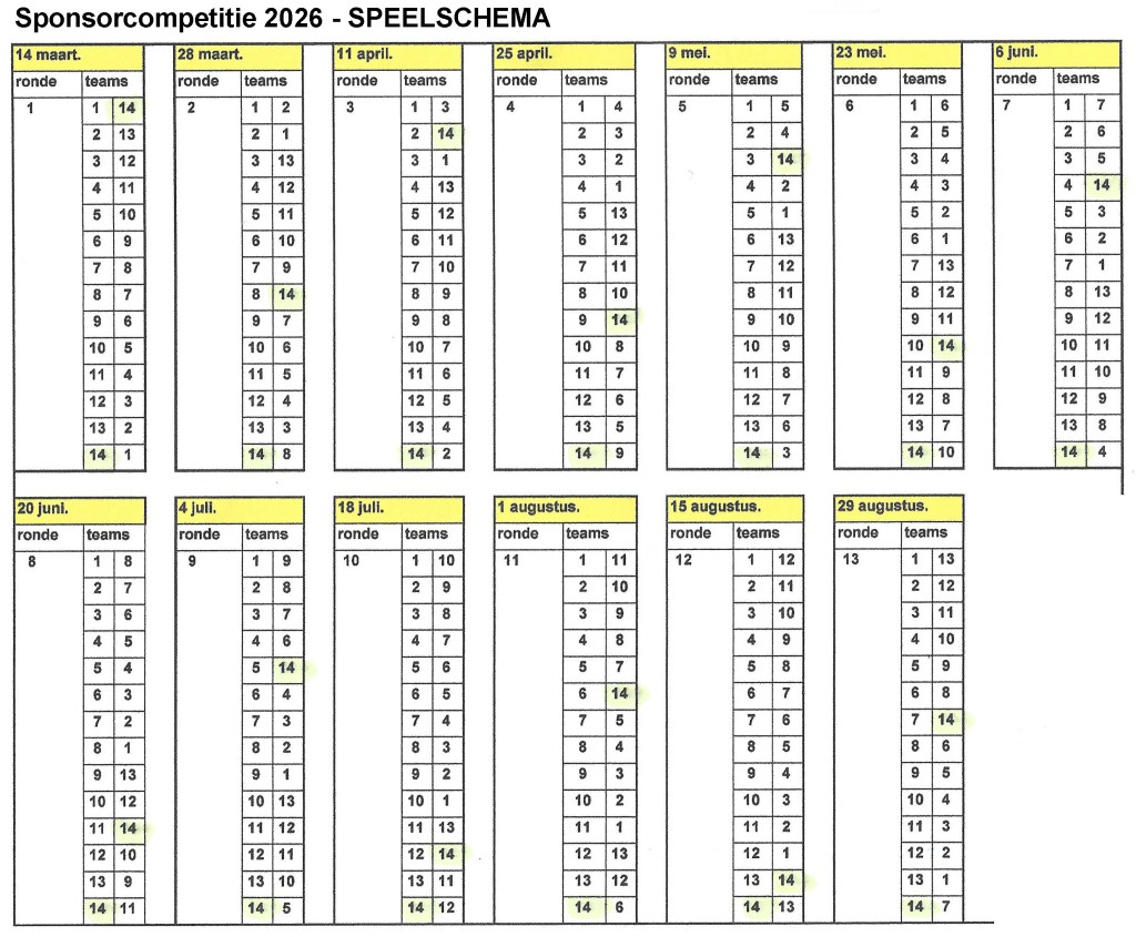 Sponsorcompetitie 2026 Speelschema Dit delen: Delen op X (Opent in een nieuw venster) X Share op Facebook (Opent in een nieuw venster) Facebook Vind-ik-leuk Aan het laden...